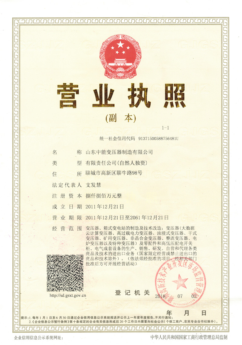 荣誉资质_深圳中能变压器厂家